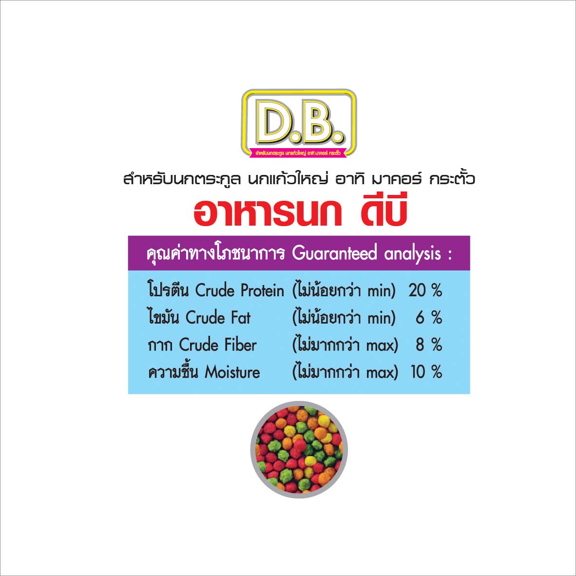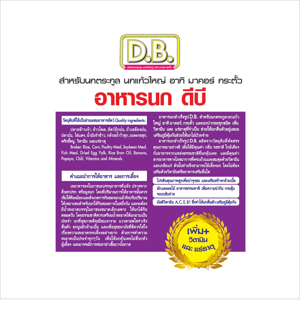 • อาหารนกสำเร็จรูป D.B.สำหรับ นกแก้วมาคอร์ นกกระตั้ว และนกปากขอทุกชนิด