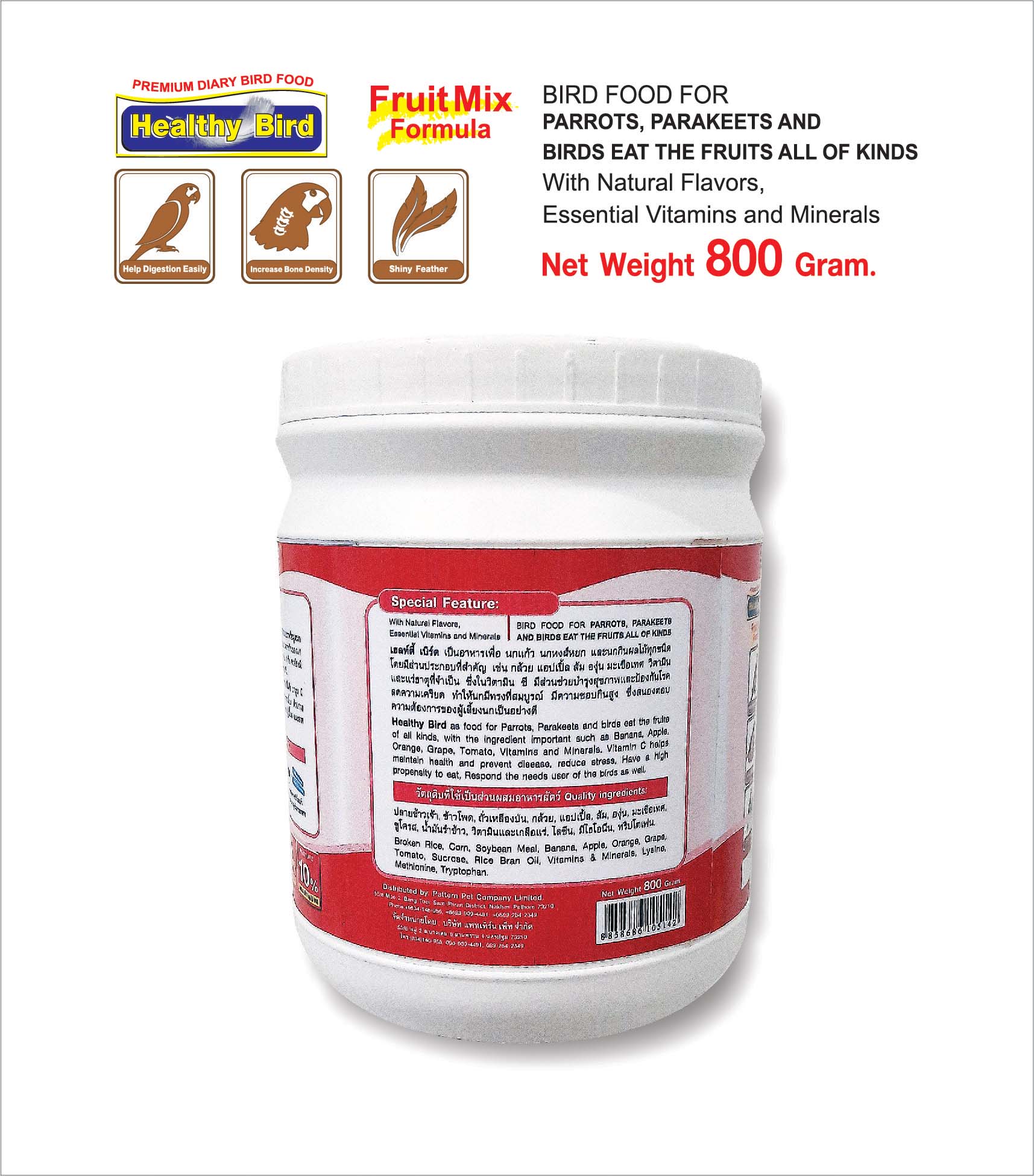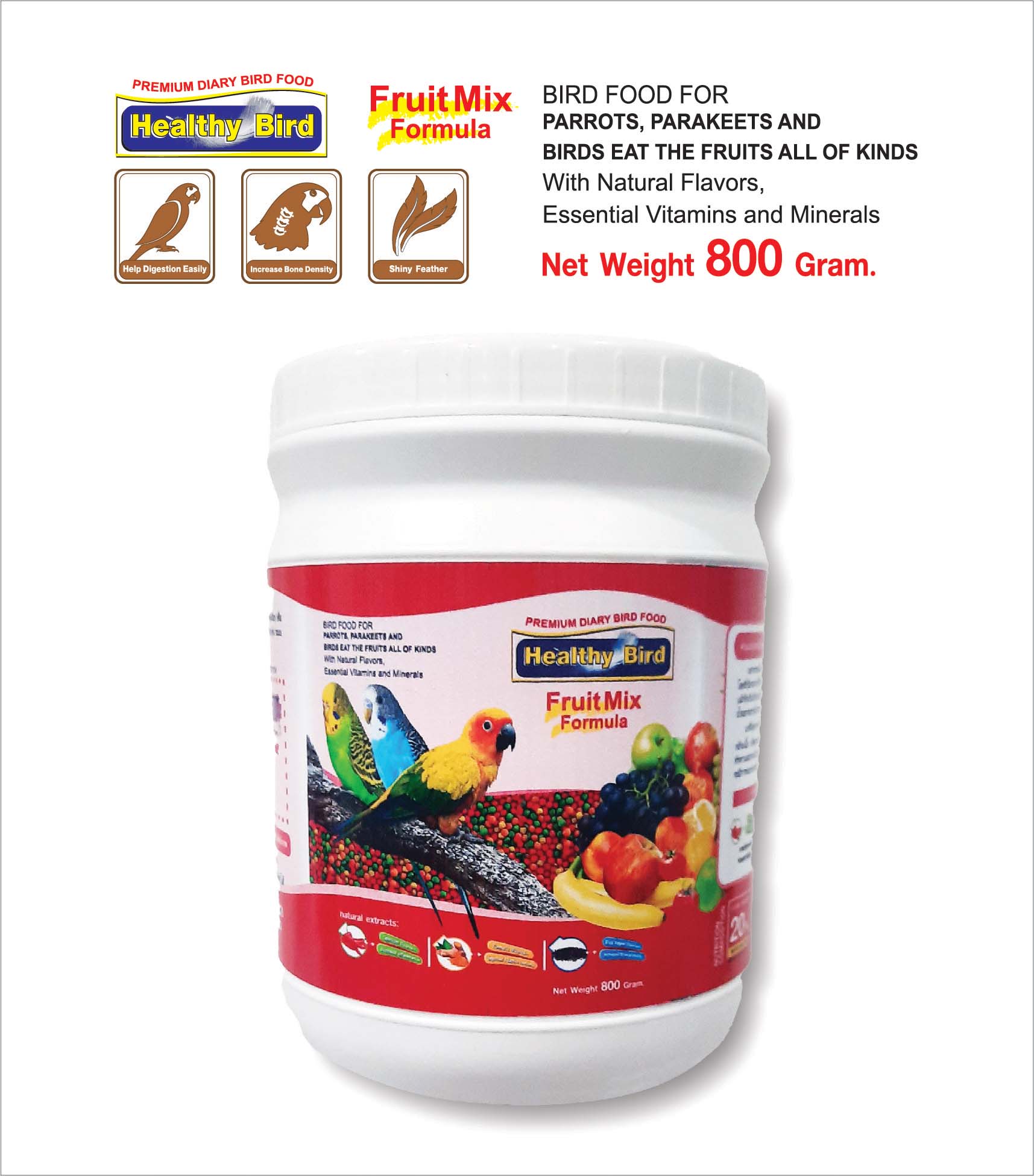 เฮลท์ตี้ เบิร์ด เป็นอาหารเพื่อ นกกรงหัวจุก นกแก้ว นกหงส์หยก เลิฟเบิร์ด และนกกินผลไม้ทุกชนิด