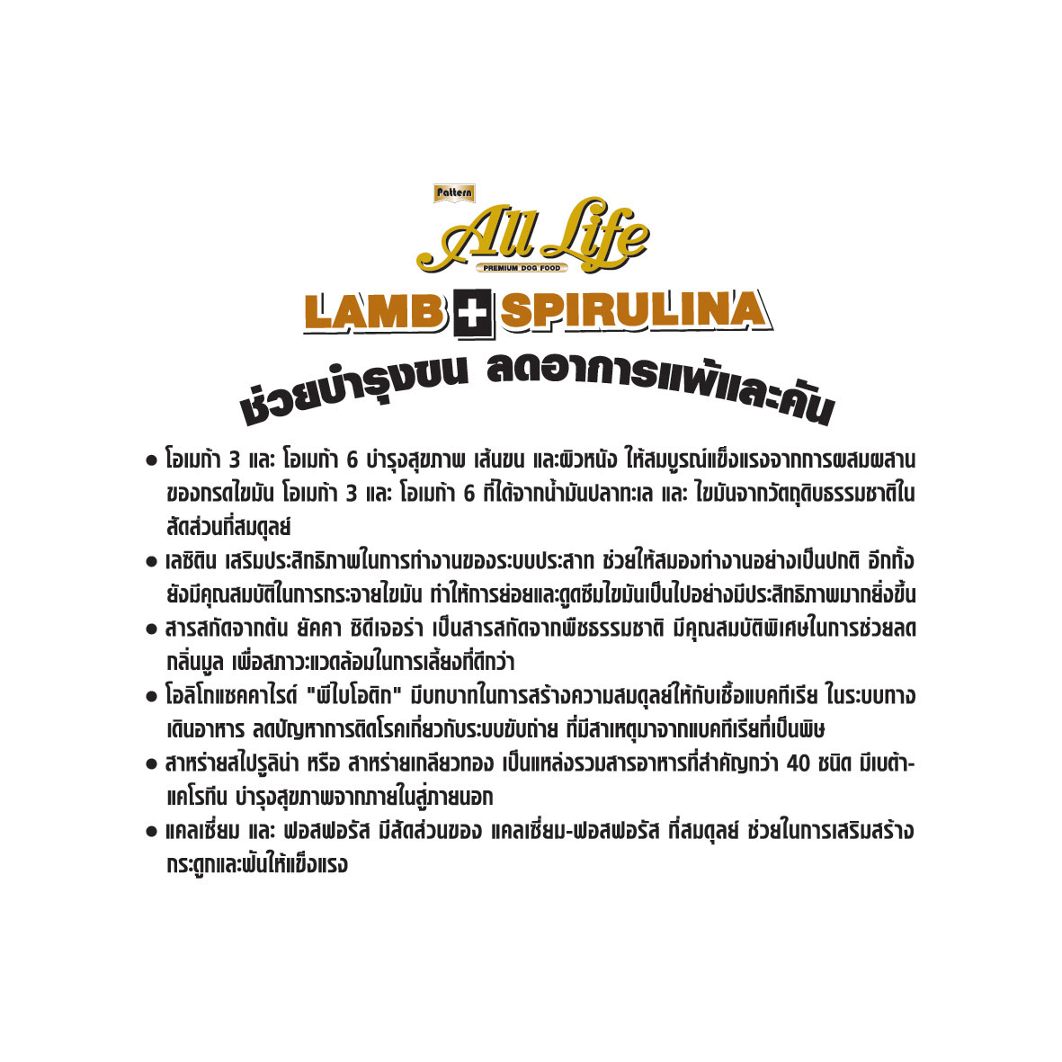 • All Life เป็นอาหารสำหรับสุนัขทุกช่วงวัย ที่คำนึงถึงคุณค่าทางโภชนาการที่สุนัขควรได้รับอย่างครบครัน