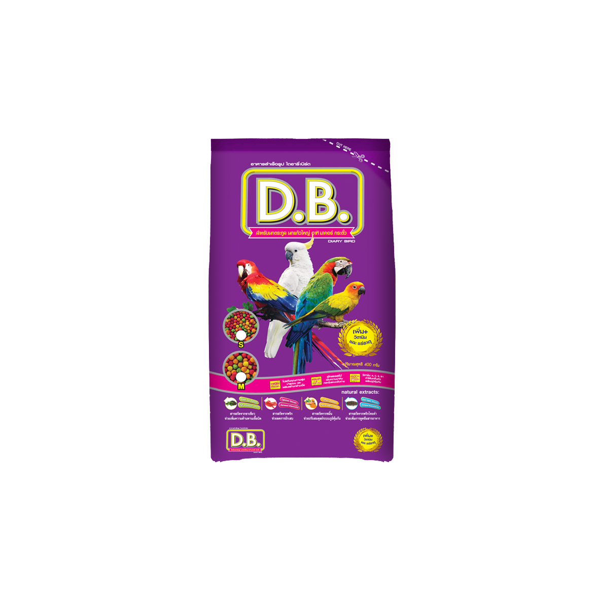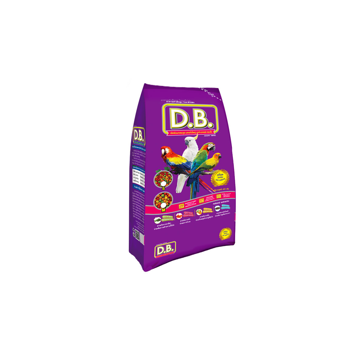 • อาหารนกสำเร็จรูป D.B.สำหรับ นกแก้วมาคอร์ นกกระตั้ว และนกปากขอทุกชนิด
