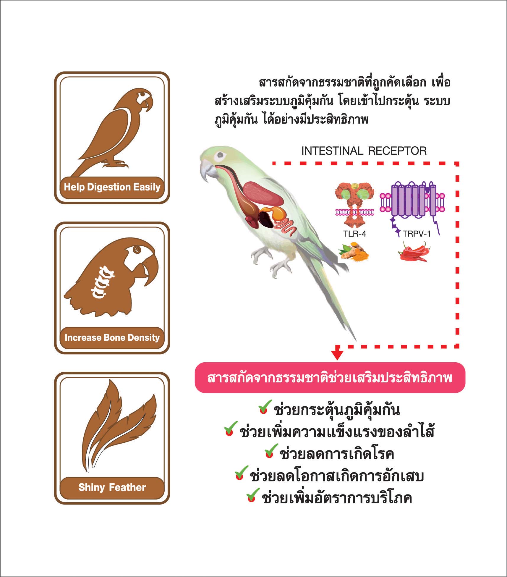เฮลท์ตี้ เบิร์ด เป็นอาหารเพื่อ นกกรงหัวจุก นกแก้ว นกหงส์หยก เลิฟเบิร์ด และนกกินผลไม้ทุกชนิด